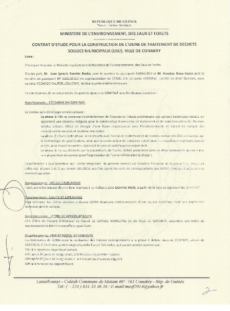 APG a través de GEMA, empresa de derecho guineano, creada a tal fin, ha firmado un contrato con el Ministerio de medioambiente para realizar un estudio previo de la viabilidad de una “solución integral” para el tratamiento de los RSU de la ciudad de Conakry.