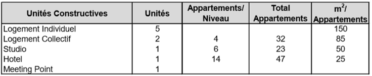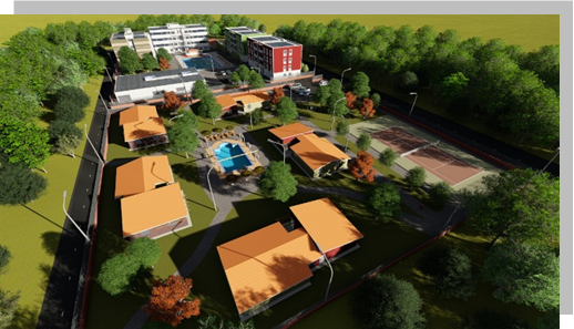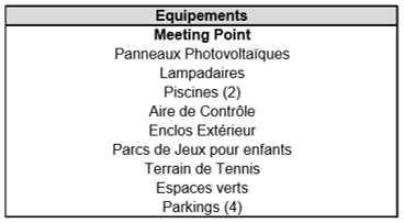 La Ciudad está constituida de varios tipos de edificios sirviendo de vivienda, de distracción y proponiendo de servicios esenciales de base y respondiendo igualmente a las normas internacionales